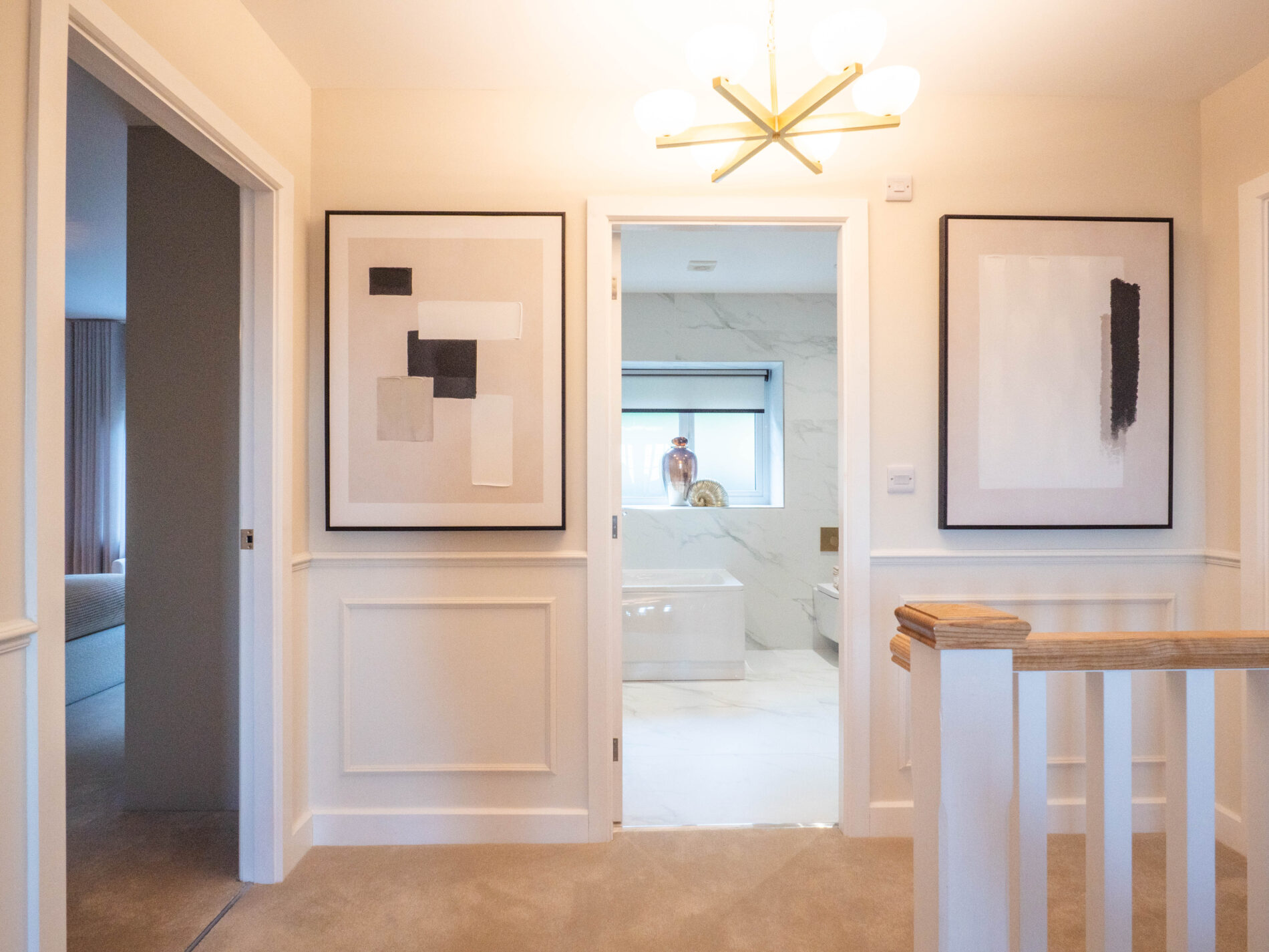 This home features five generously sized bedrooms, including two with luxurious en suite bathrooms and one dedicated dressing room. Each bedroom is designed to offer a spacious and airy atmosphere, ensuring comfort and relaxation throughout.